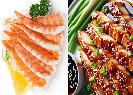 Two Pieces(1×Teriyaki chicken and 1×Cooked prawn).